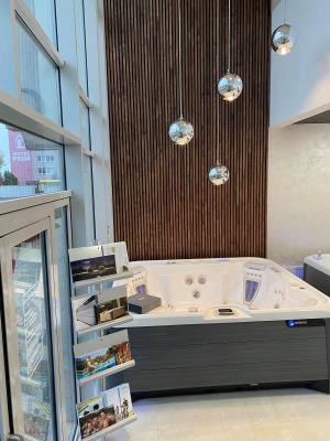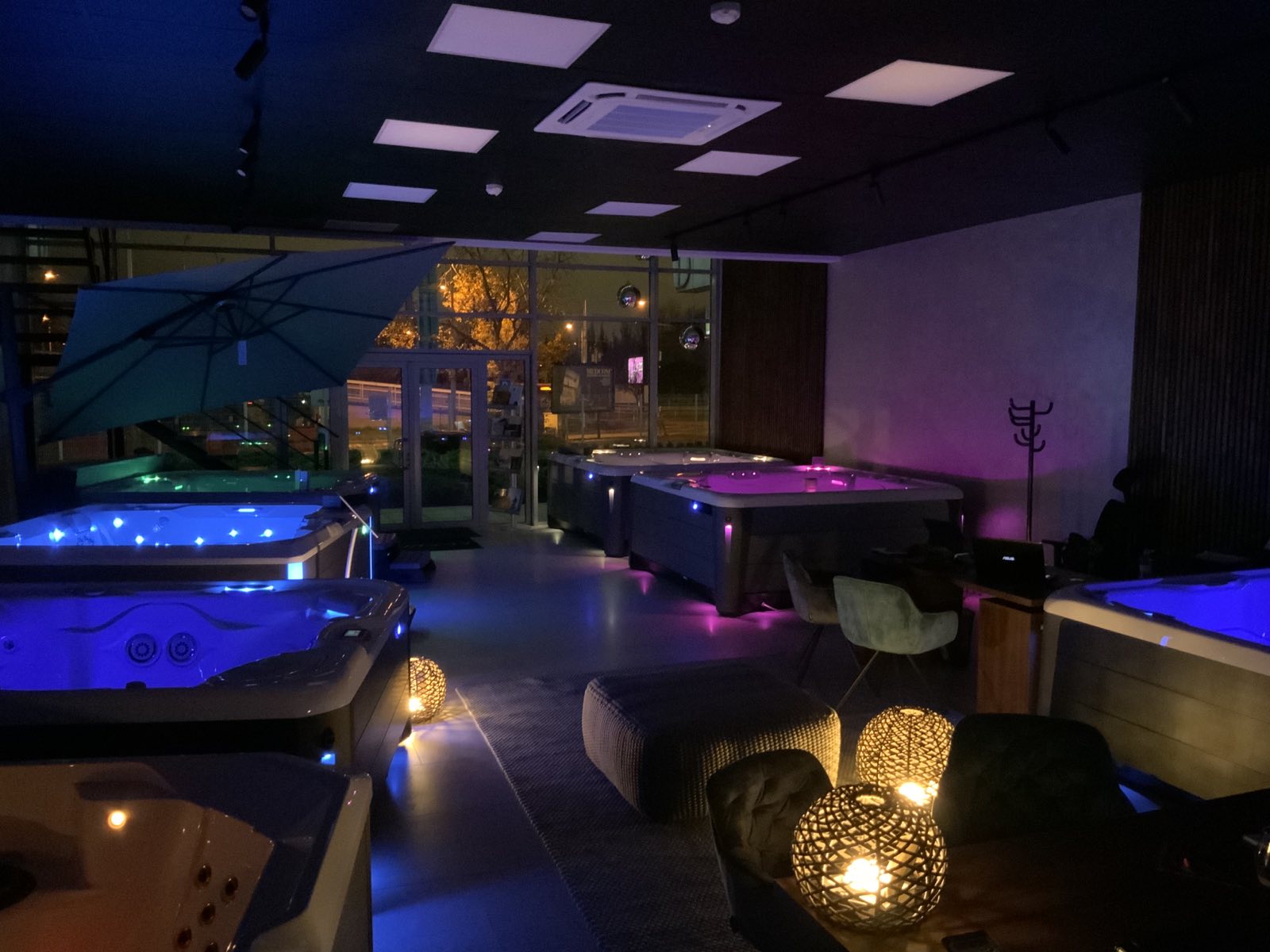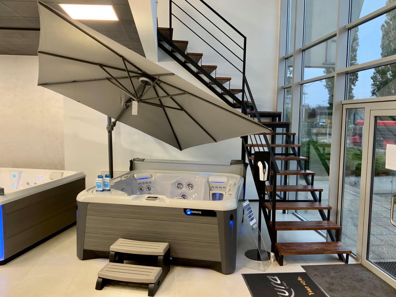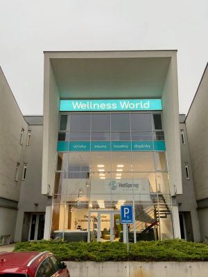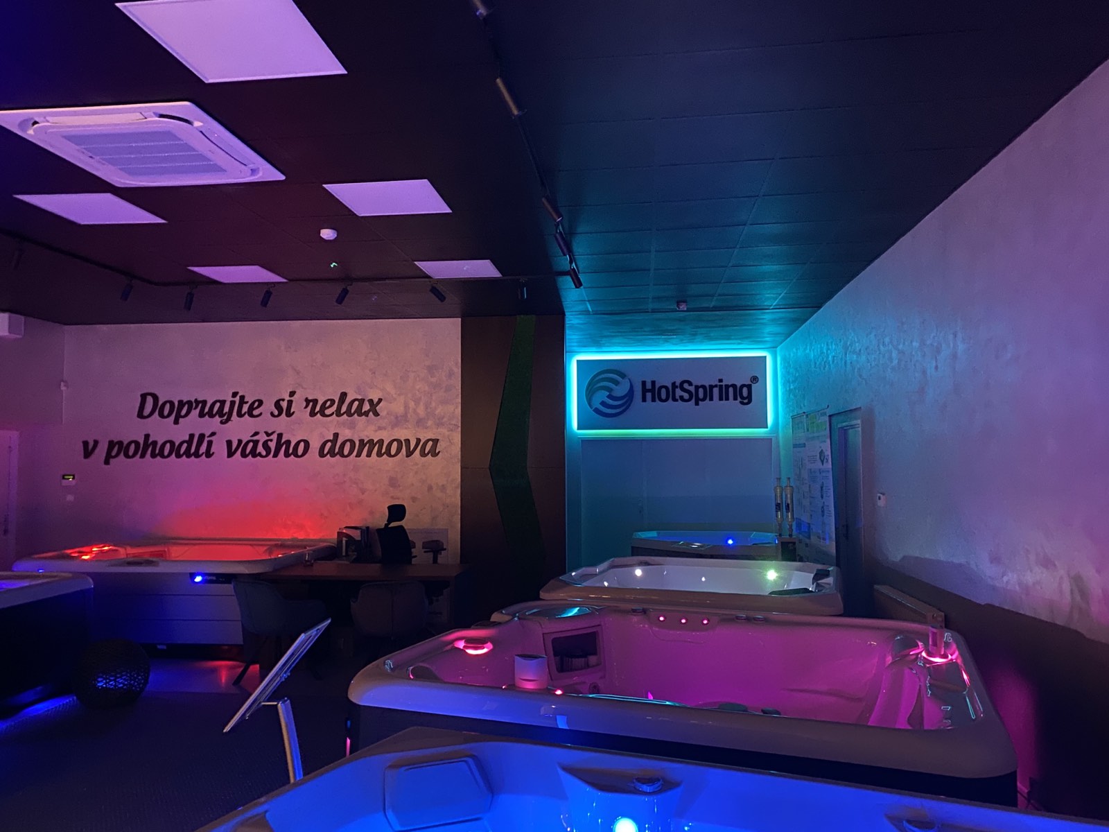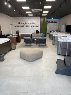 Exteriér budovy, vstup do vestibulu, obchodný priestor, prezentácia víriviek Hotspring
